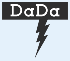 The word ‘DaDa’, white on black, a black lightning flash zig-zagging down from the text.